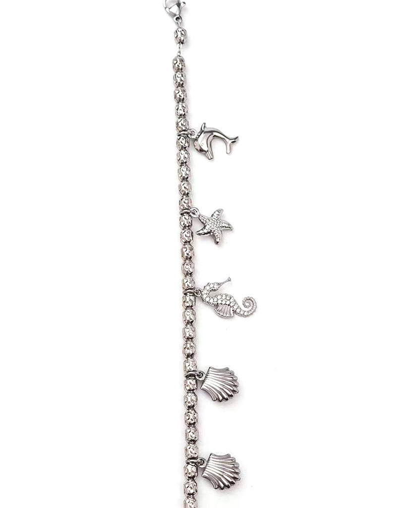 Βραχιόλι με διακοσμητικό ιππόκαμπο AA-B229 - Ασημί