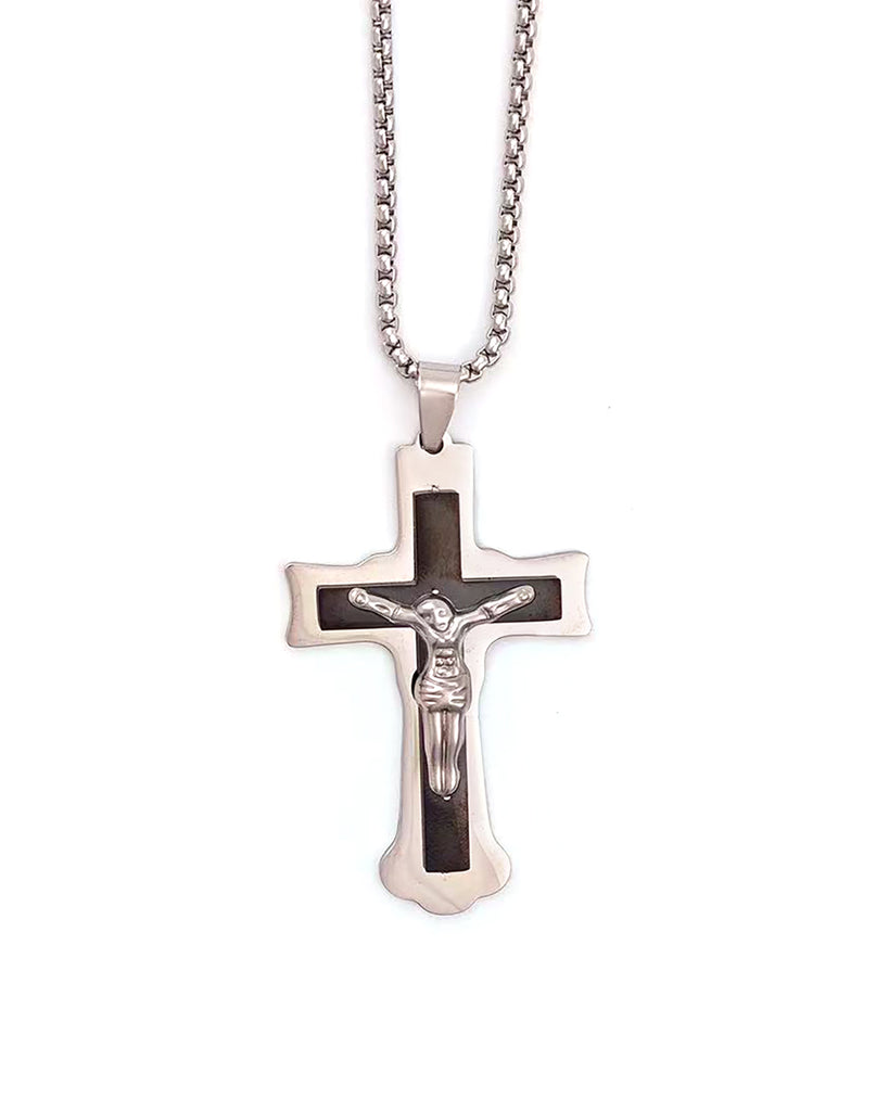 Αλυσίδα λαιμού με σταυρό WW-K443 - Μαύρο