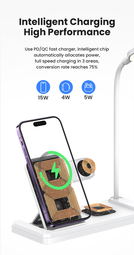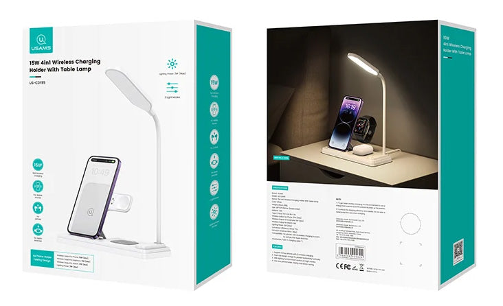 USAMS ασύρματος φορτιστής US-CD195 με φωτιστικό, 4 σε 1, 15W, λευκός