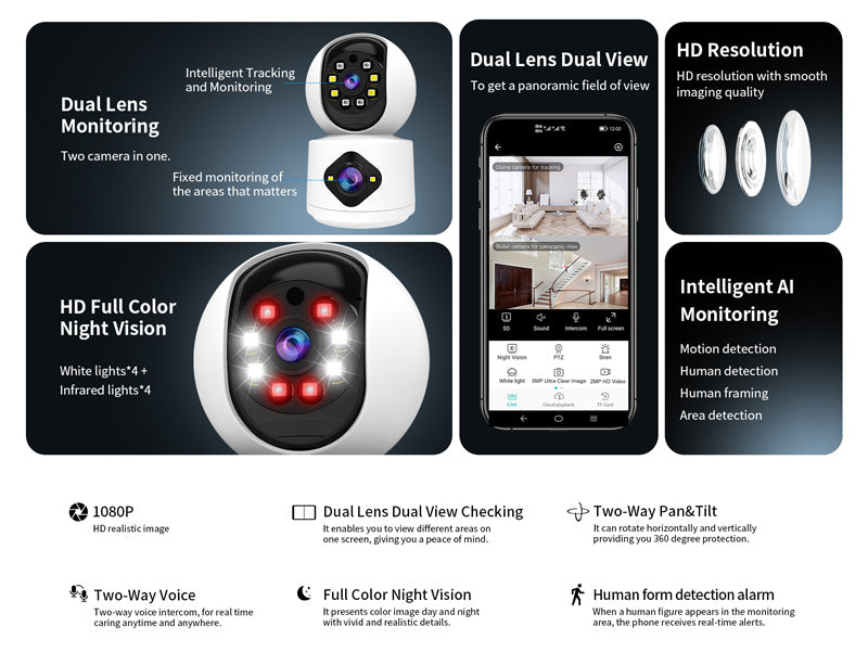 Η smart κάμερα C992DR της Vstarcam καταγράφει κάθε κίνηση σε καθαρή, υψηλής ευκρίνειας ανάλυση. Ενσωματώνει 2 φακούς που επιτρέπουν μεγαλύτερη κάλυψη στον χώρο και υποστηρίζει PTZ λειτουργία αλλά και έγχρωμη νυχτερινή όραση.