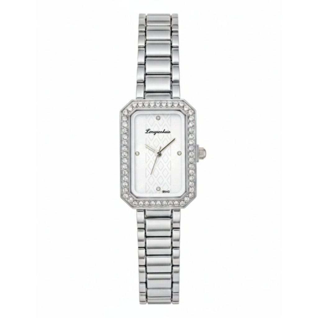 Γυναικείο Vintage ρολόι με ασημί μπρασελέ από ανοξείδωτο ατσάλι και λευκό καντράν με στρας.
