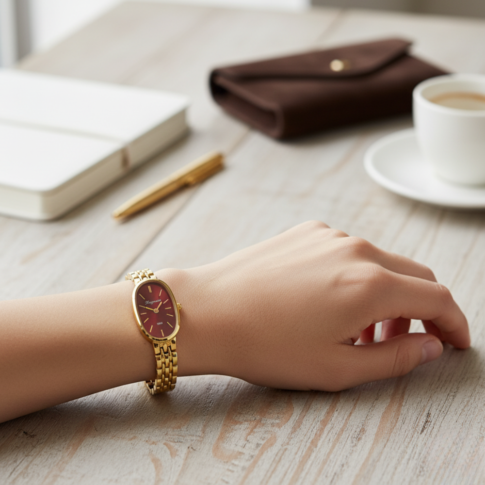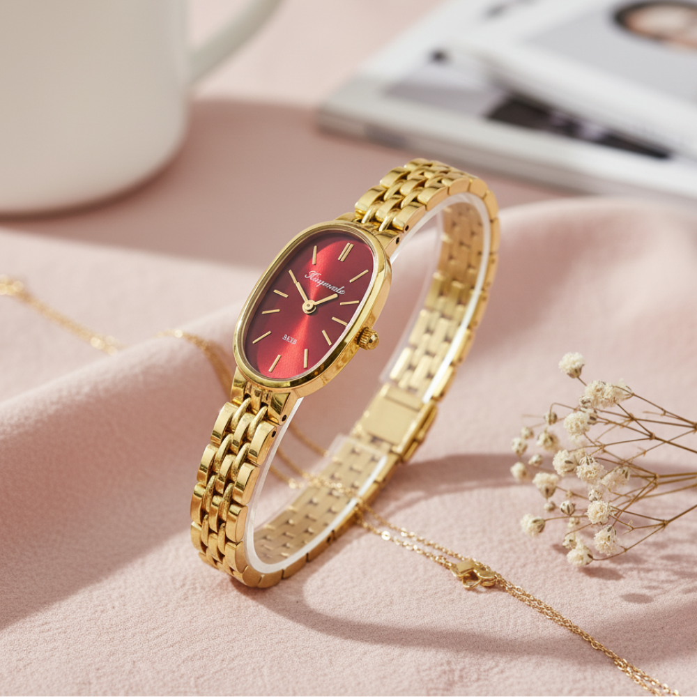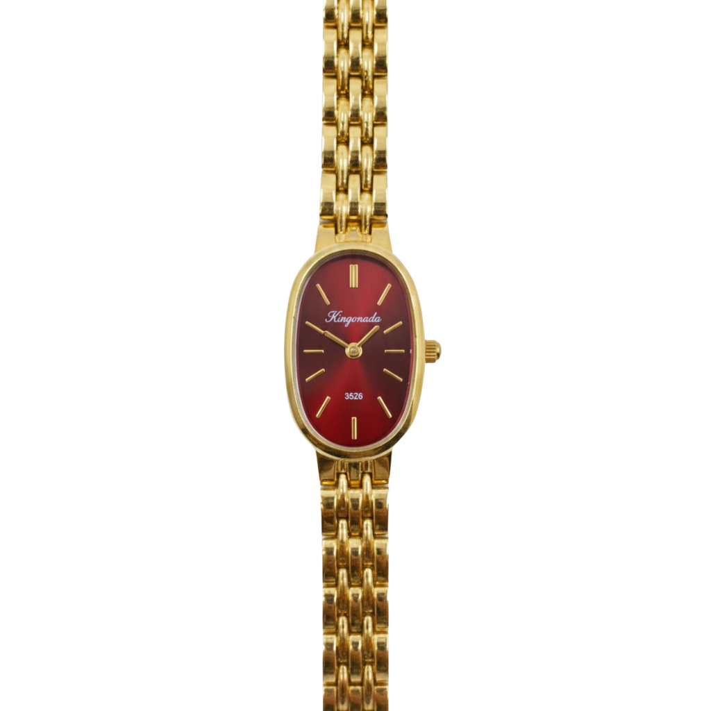 Vintage Γυναικείο Ρολόι Anne Red με Χρυσό Μεταλλικό Μπρασελέ