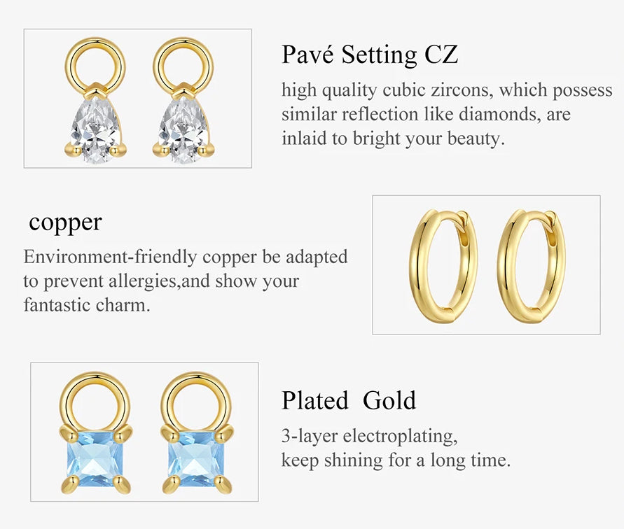 BAMOER σκουλαρίκια κρίκοι YIE262 με 3x σετ charm, κυβική ζιρκόνια, χαλκός, χρυσόΜοντέρνα σκουλαρίκια κρίκοι Bamoer, κατασκευασμένα από χαλκό και διακοσμημένα με αστραφτερή κυβική ζιρκόνια.Διαθέτουν 3 σετ charm με διαφορετικά σχεδία που μπορείτε να τα εναλλάσσετε ανάλογα με την διάθεση και την αρέσκεια σας.Μπορούν να συνδυαστούν εύκολα με άλλα κοσμήματα, να...