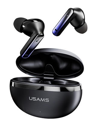 USAMS earphones με θήκη φόρτισης E02, TWS, ANC & ENC, Φ10mm, 35/300mAh, μαύρα