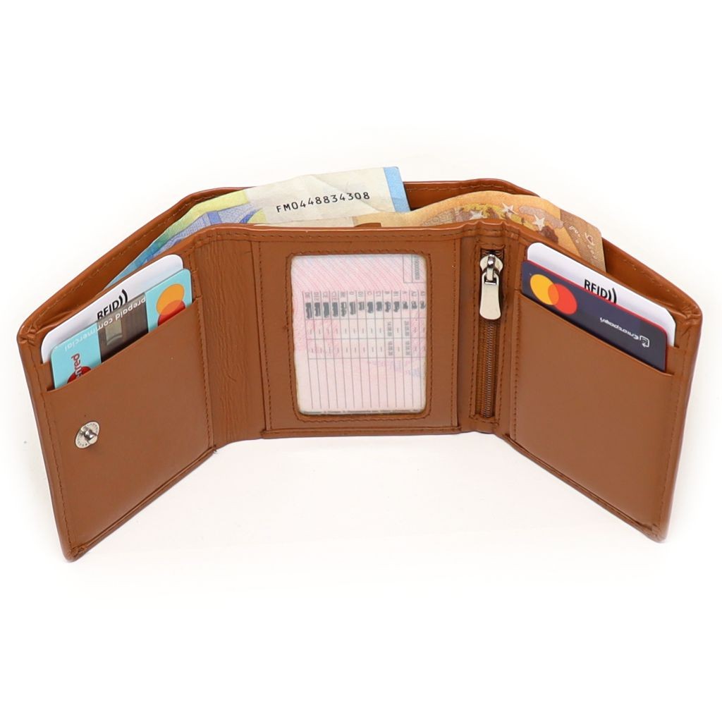 Το πορτοφόλι MENTZO L301 TAN IRIS RFID ανήκει στην κατηγορία των μικρών πορτοφολιών, κλείνει στα τρία με κουμπί, διαθέτει δύο θήκες για χαρτονομίσματα, δίπλωμα και κάρτες και απευθύνεται σε άντρες & γυναίκες. Είναι κατασκευασμένο από υψηλής ποιότητας δέρμα μοσχάρι. Ακόμη και μέσα δέρμα, που σημαίνει τεράστια αντοχή στο καθημερινό άνοιξε - κλείσε, σε αντίθεση με παρόμοια πορτοφόλια που διαθέτουν ακρυλικό PU στο εσωτερικό και σύντομα αλλοιώνονται. Τα κοψίματα και οι γραμμές του ξεχωρίζουν για την αρτιότητα που οδηγεί στο τέλειο αποτέλεσμα.