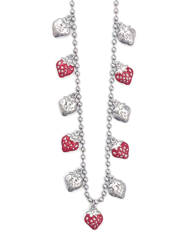 Κρεμαστό λαιμού με διακοσμητικές φραουλες WW-K537 - Ασημί