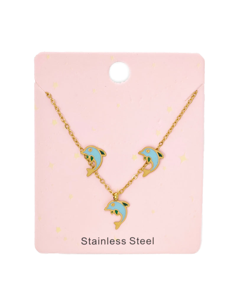 Κρεμαστό σετ λαιμού με σκουλαρίκια δελφίνια YC-KS006 - Χρυσό