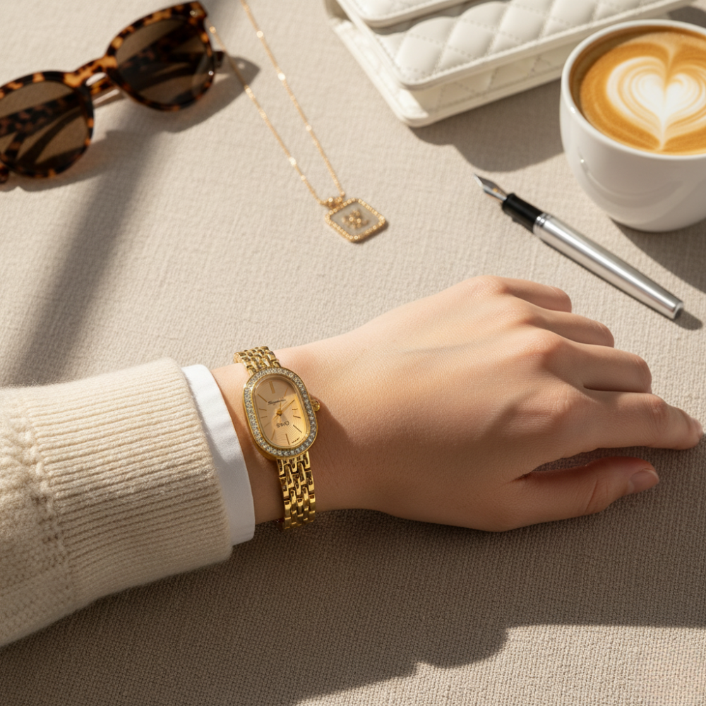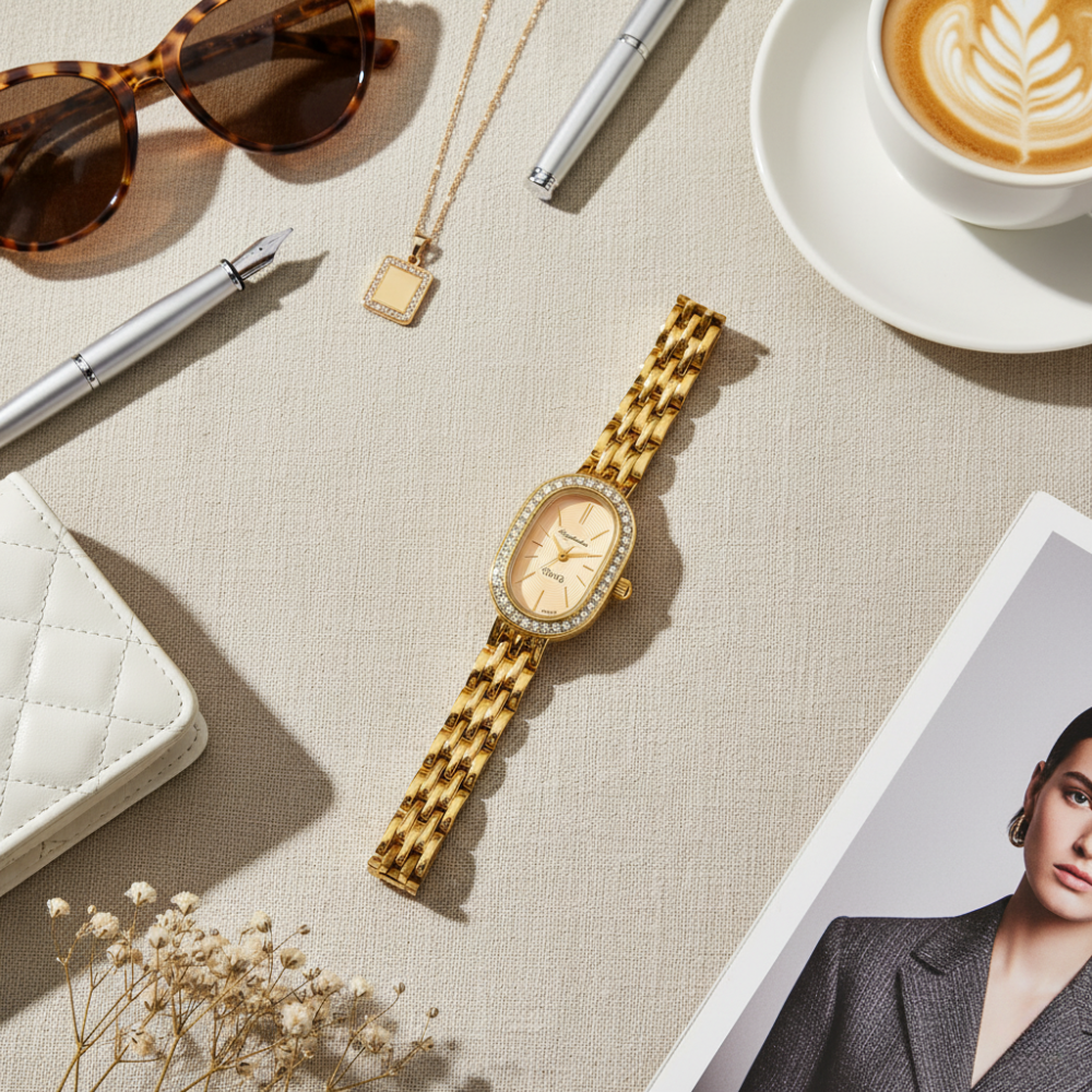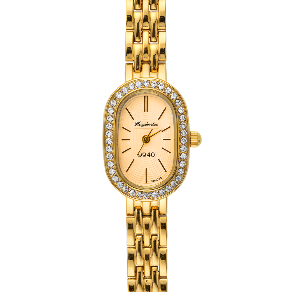 Γυναικείο Vintage ρολόι με μπρασελέ από ανοξείδωτο ατσάλι και χρυσό καντράν με στρας.