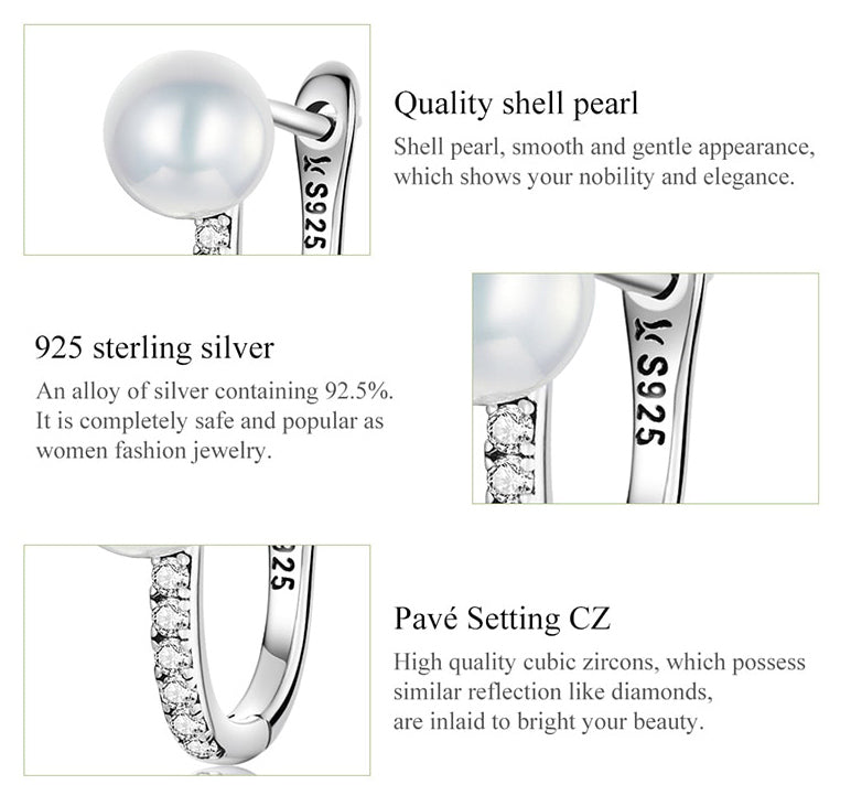 Κομψα σκουλαρίκια κρίκος Bamoer κατασκευασμένα από ασήμι 925 με επιπλατίνωμα, διακοσμημένα με αστραφτερή κυβική ζιρκόνια και πέρλα λευκού χρώματος.