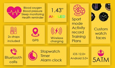 -οθόνη: 1.43" AMOLED, 466x466px