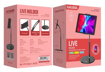 Επιτραπέζια βάση της KAKUSIGA, κατάλληλη για χρήση με smartphone ή tablet.