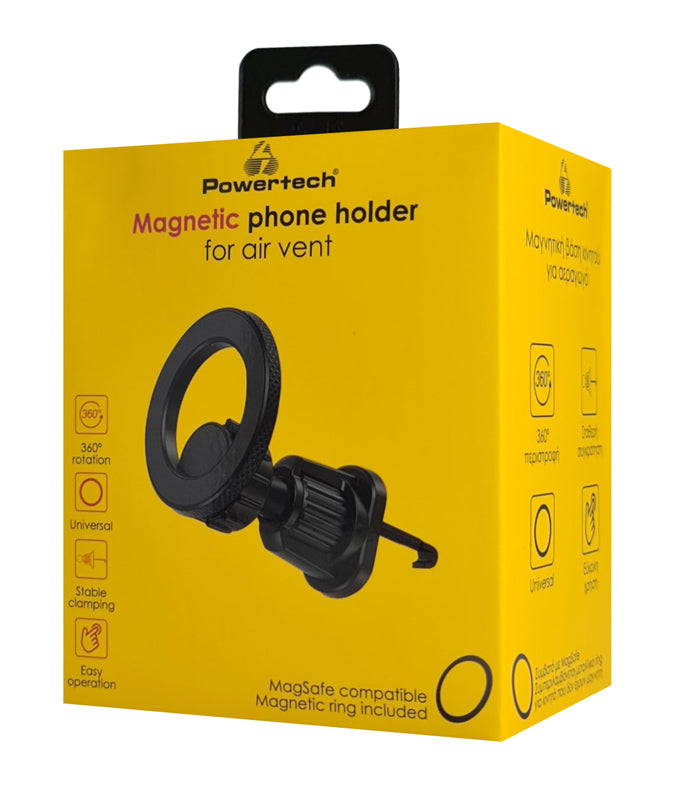 POWERTECH βάση smartphone αυτοκινήτου PT-1240, αεραγωγού, μαγνητική, μαύρη