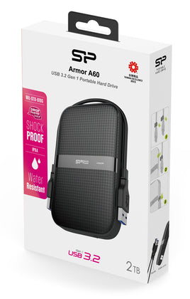 SILICON POWER εξωτερικός HDD Armor A60, 2TB, USB 3.2, μαύρος