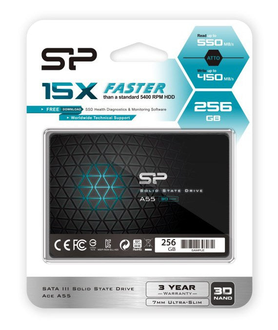 SILICON POWER SSD A55 256GB, 2.5", SATA III, 460-450MB/s, 7mm