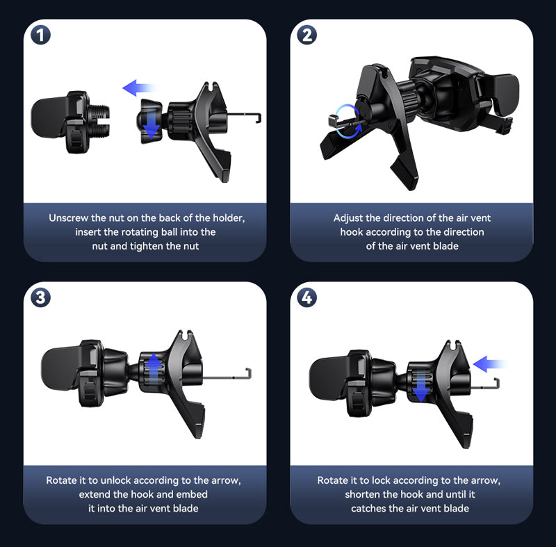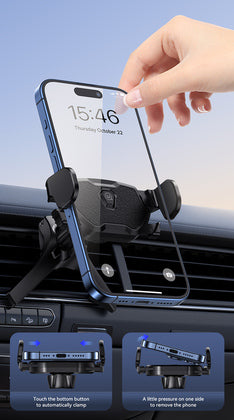 Βάση αυτοκινήτου για smartphone με στήριξη σε οριζόντιους ή κάθετους αεραγωγούς του αυτοκινήτου.