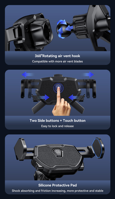 Συγκρατεί το smartphone σταθερό και ασφαλές με κλιπ συγκράτησης ενώ τα πτερύγια που ασφαλίζεται το smartphone είναι επενδυμένα από αντιολισθητικό, μαλακό υλικό.