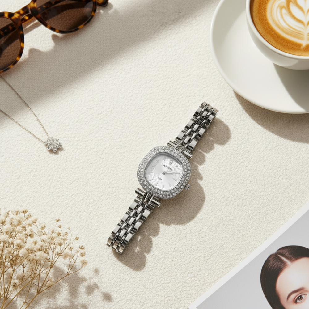 Γυναικείο Vintage ρολόι με μπρασελέ από ανοξείδωτο ατσάλι και ασημί καντράν με στρας.