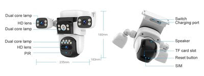 Ενσωματώνει 3 φακούς που επιτρέπουν μεγαλύτερη κάλυψη στον χώρο και υποστηρίζει PTZ λειτουργία που σας επιτρέπει την οριζόντια και κάθετη μετακίνηση της κάμερας μέσω της εφαρμογής.